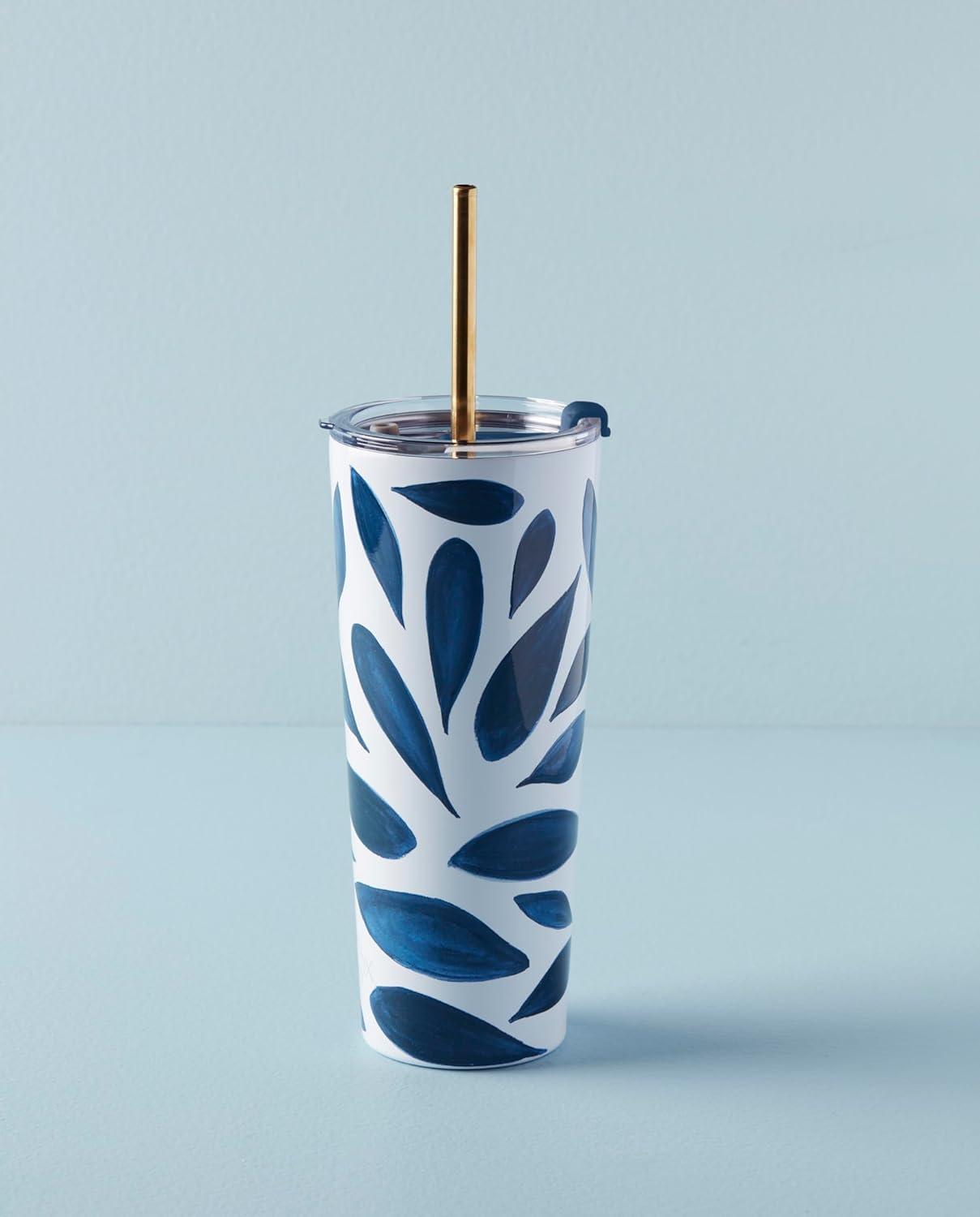 Lenox 895898 Blue Bay Ikat Pattern Stainless Steel Cocktail Tumbler(Leaf)