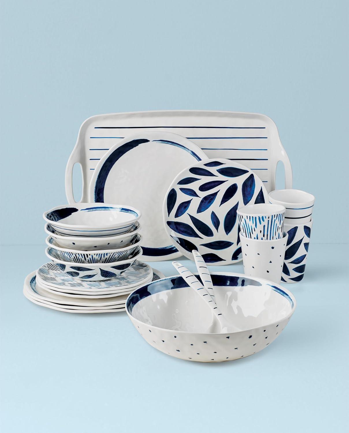 Lenox 895323 Blue Bay Melamine 16-Piece Dinnerware Set, Lightweight Melamine Material