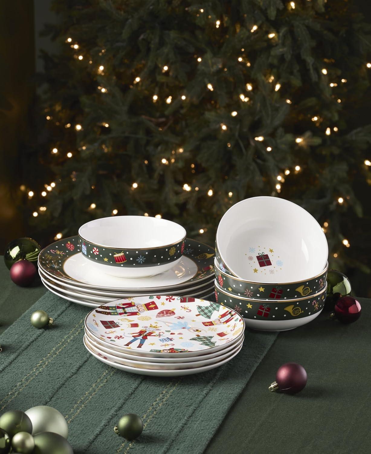 Lenox Dinnerware Set, Nutcracker Ballet 12-Piece Dinnerware Set, Service for 4, Made Of Porcelain, Dishwasher/Microwave Safe, Includes Plates and Bowls for Pasta and Salad, Christmas Decor (12 Piece)