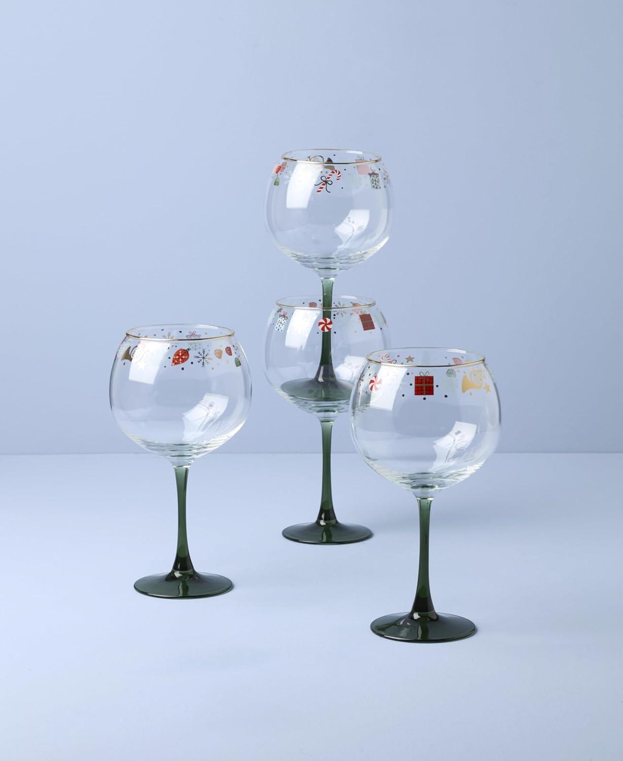 Lenox 898401 Nutcracker Ballet Balloon Wine Glasses, Set of 4, Christmas, Stemware, Festive Holiday