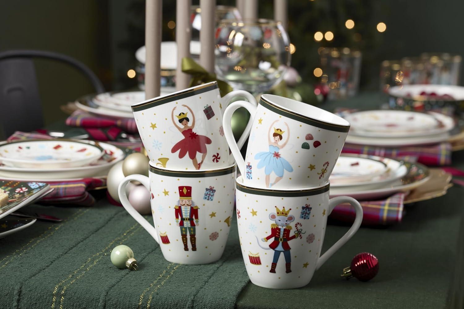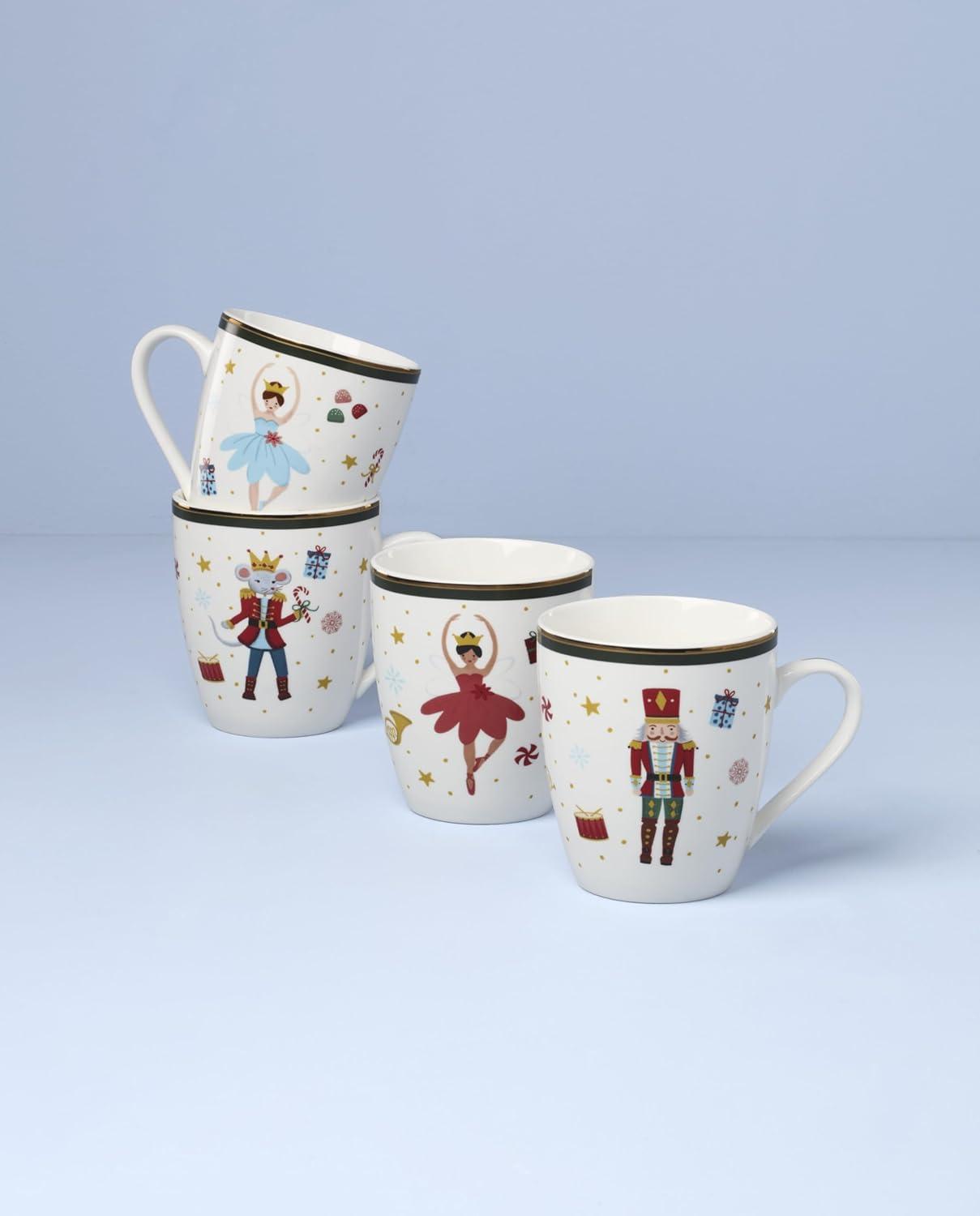 Lenox Coffee Mugs, Set Of 4 Nutcracker Ballet 13 Oz Coffee Mugs, Porcelain Material with Gold Accents, Dishwasher and Microwave Safe, Assorted Nutcracker Design, Christmas Decorations (13 Oz, 4 Piece)