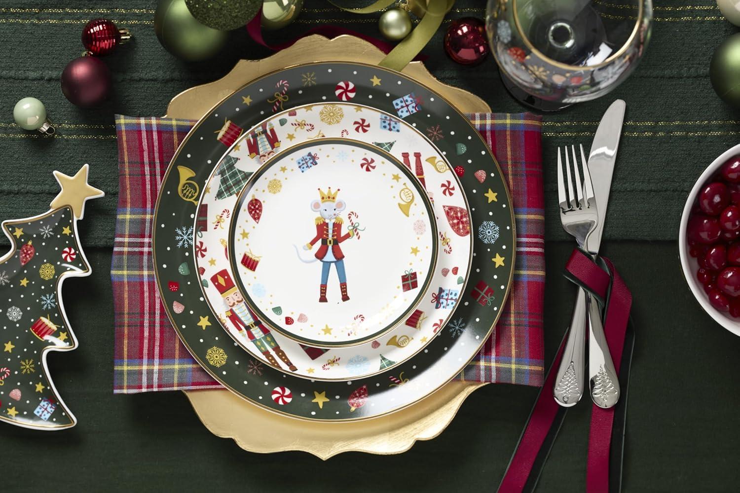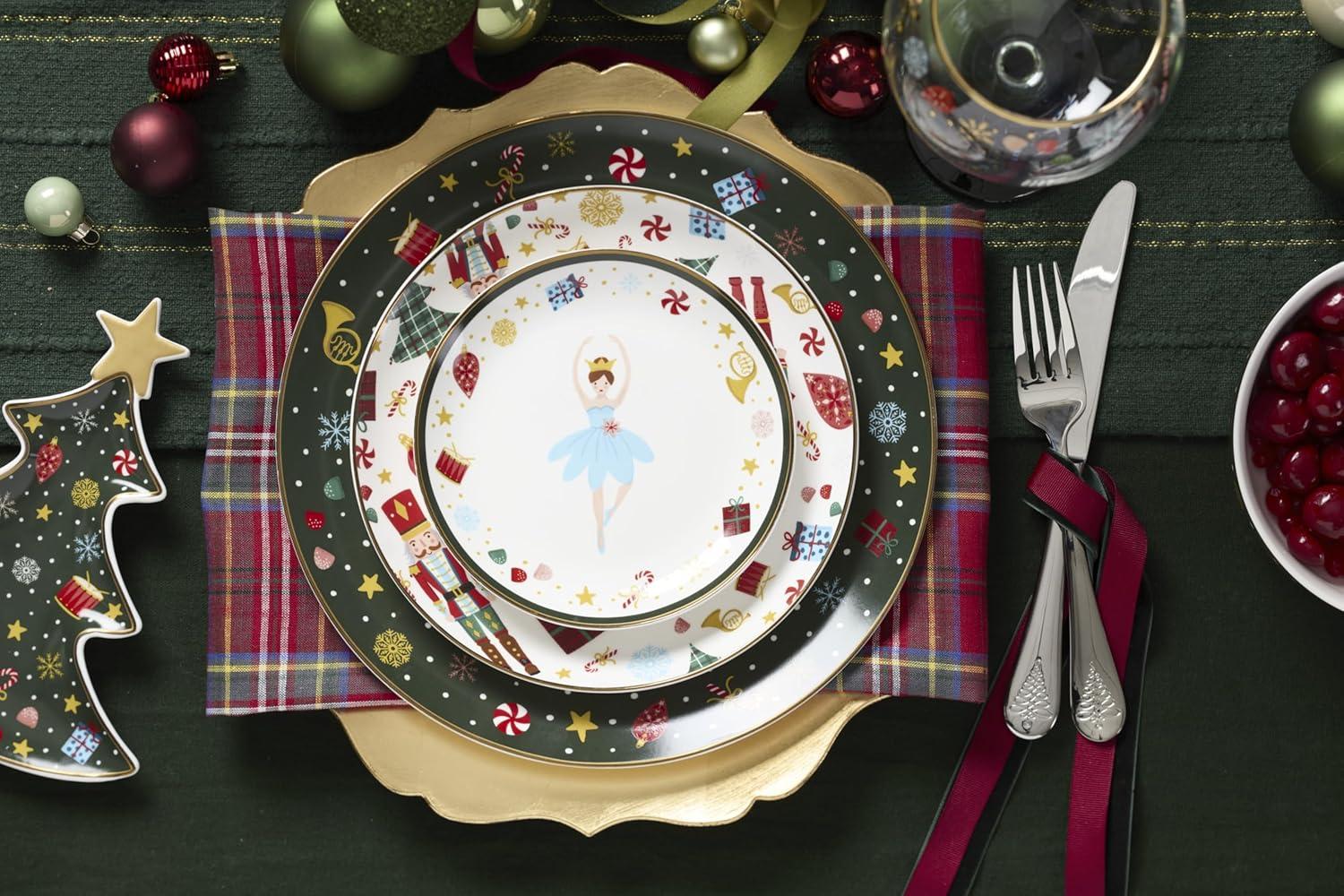 Lenox Dinnerware Set, Nutcracker Ballet Accent Plates, Service for 4 Porcelain Dinnerware, Microwave & Dishwasher Safe, Pasta, Salad and Dinner, Nutcracker Christmas Accent Plates (Assorted, 4 Piece)