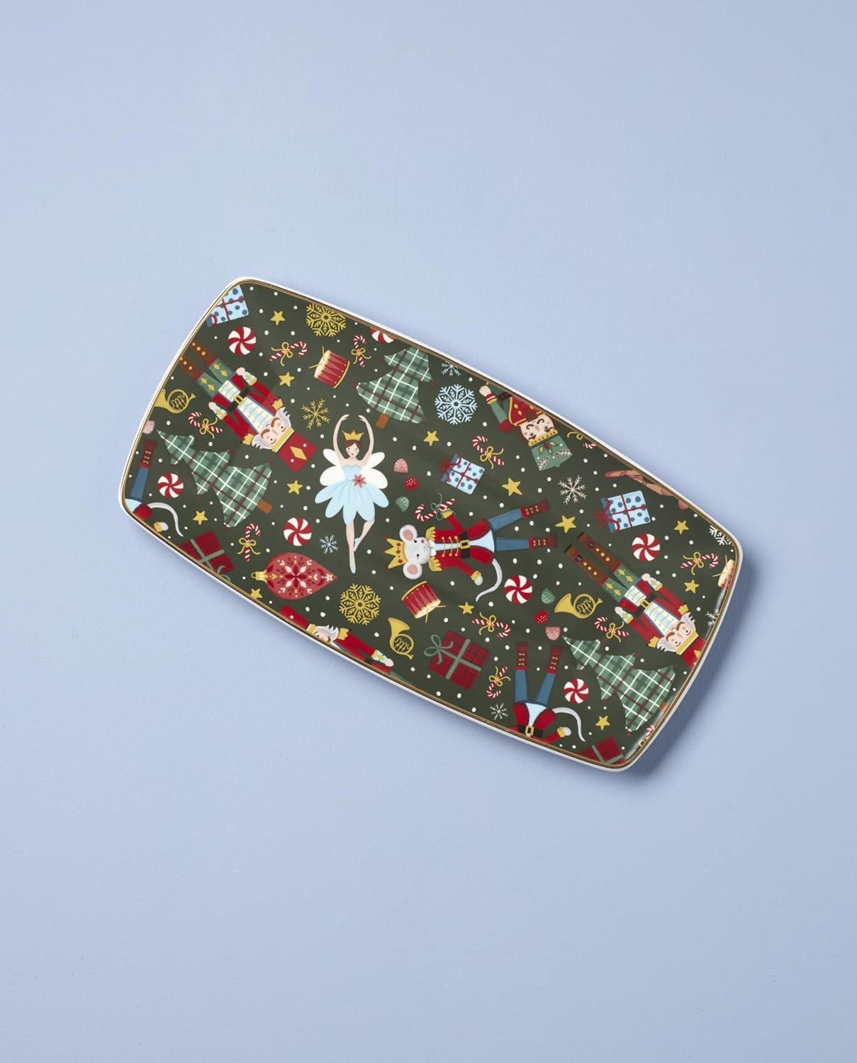 Lenox Serveware, Nutcracker Ballet Hors Doeuvres Tray, Food Tray, 13 x 6.75-Inch, Microwave Safe & Dishwasher Safe Porcelain, Christmas Serving Platter Tray, Christmas Table Centerpieces (1 Piece)