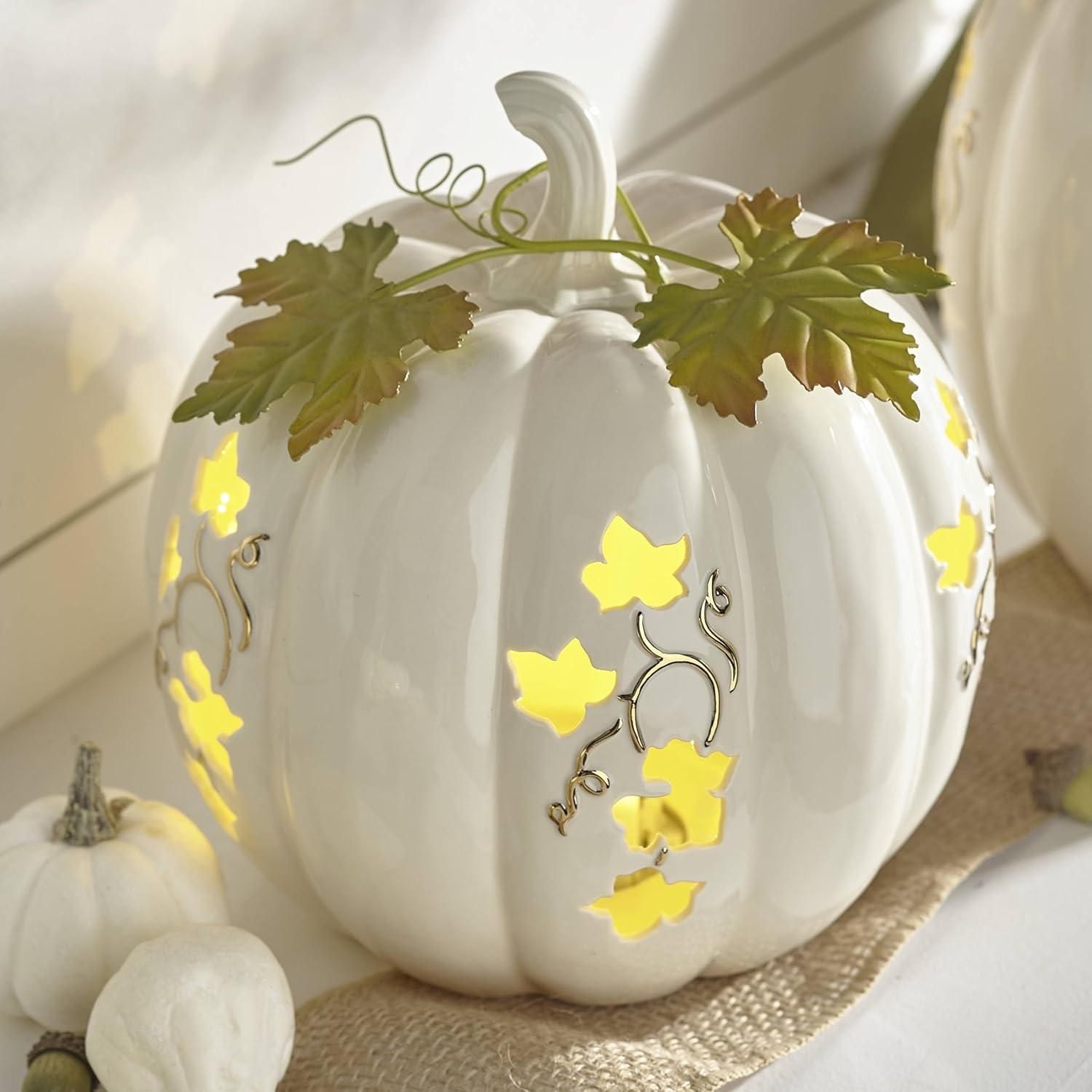 Lenox Lighted Pumpkin Small Centerpiece, 5.5-Inch Lighted, White, Halloween Table Decoration, Halloween Decor Indoor, Pumpkin Decor, Fall Decor for Home (White, 1 Piece) 3 AAA Batteries Not Included(1 Count)