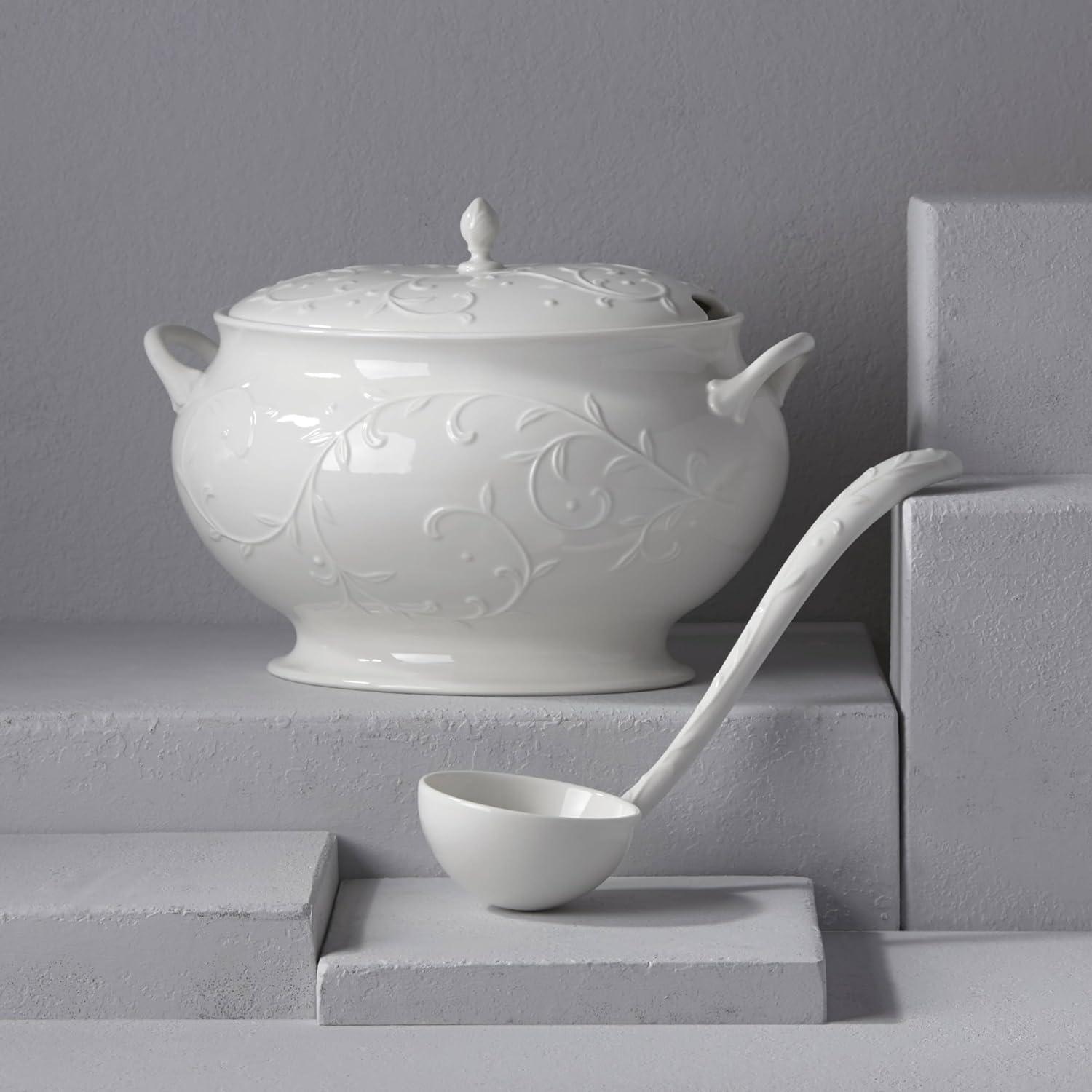 Lenox Opal Innocence Carved Covered Soup Tureen with Ladle, 10-1/4-Inch, White, 152 ounces