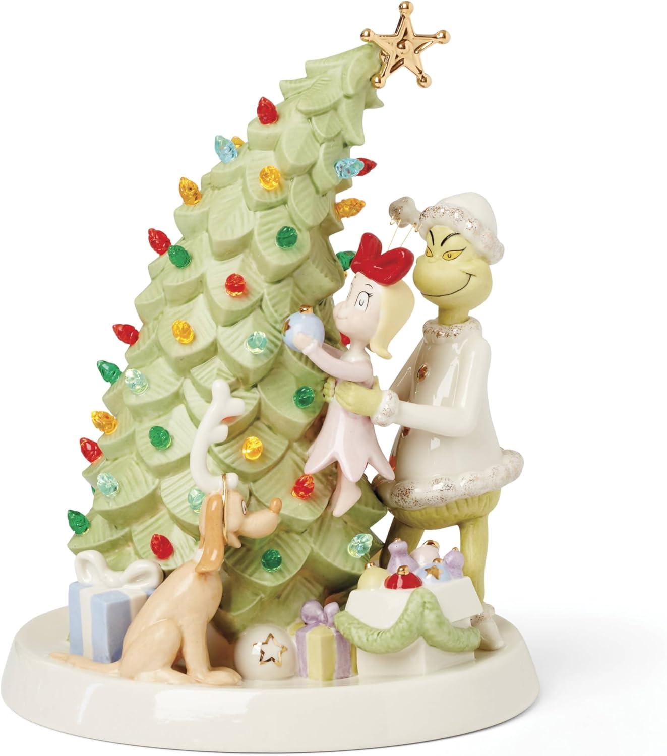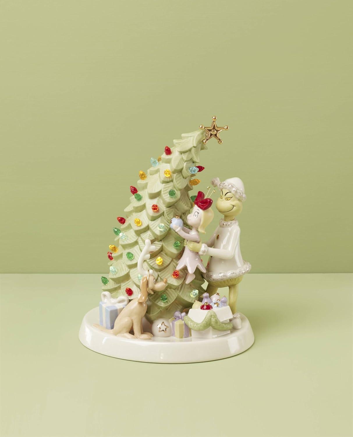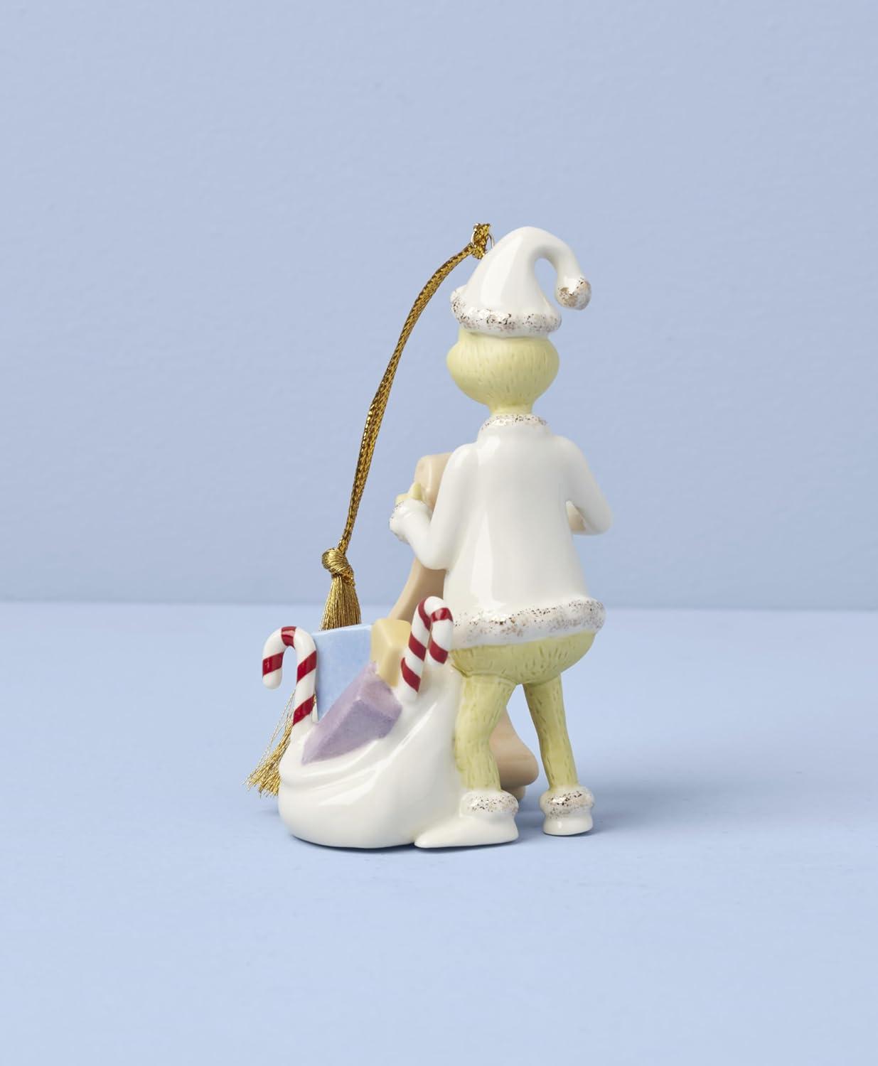 Lenox Ornaments, The Grinchs List Ornament, Porcelain Material with Gold Accents, Includes Gold Cord for Hanging, Holiday Decorations, Christmas Tree, Christmas Decoration, Tree Decor (1 Piece)(Lit Figurine)