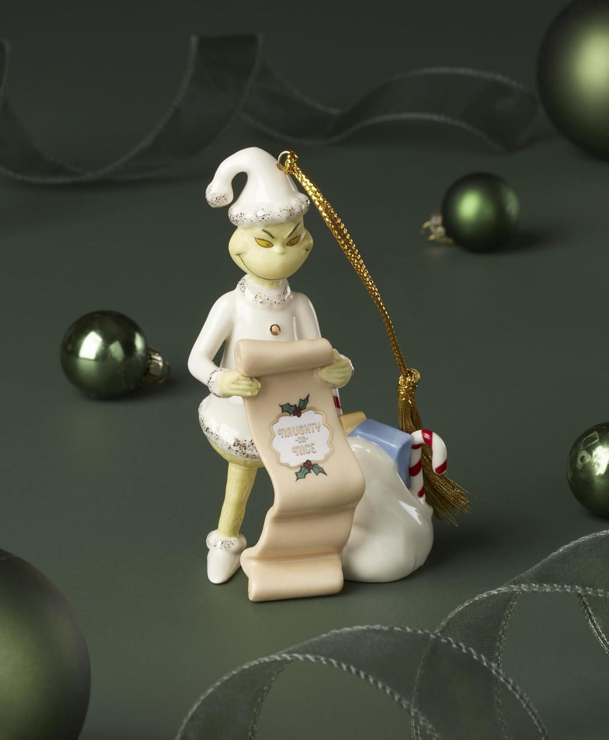 Lenox Ornaments, The Grinchs List Ornament, Porcelain Material with Gold Accents, Includes Gold Cord for Hanging, Holiday Decorations, Christmas Tree, Christmas Decoration, Tree Decor (1 Piece)(Figurine)