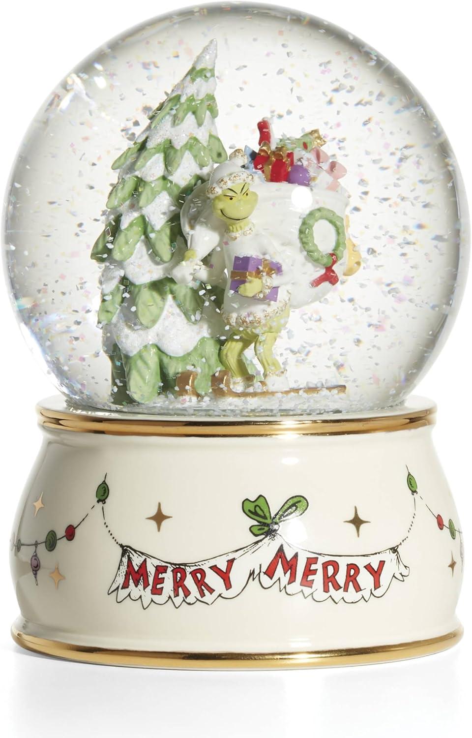 Lenox Ornaments, The Grinchs List Ornament, Porcelain Material with Gold Accents, Includes Gold Cord for Hanging, Holiday Decorations, Christmas Tree, Christmas Decoration, Tree Decor (1 Piece)(Snow Globe)