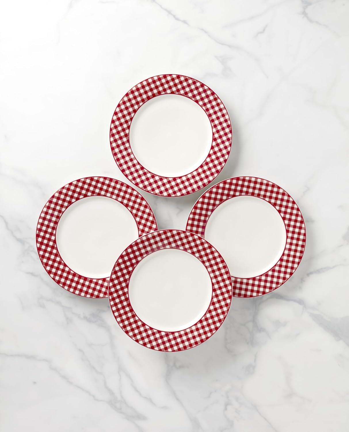 Lenox 897165 Gingham Red Dinner Plates, Set of 4(Red)