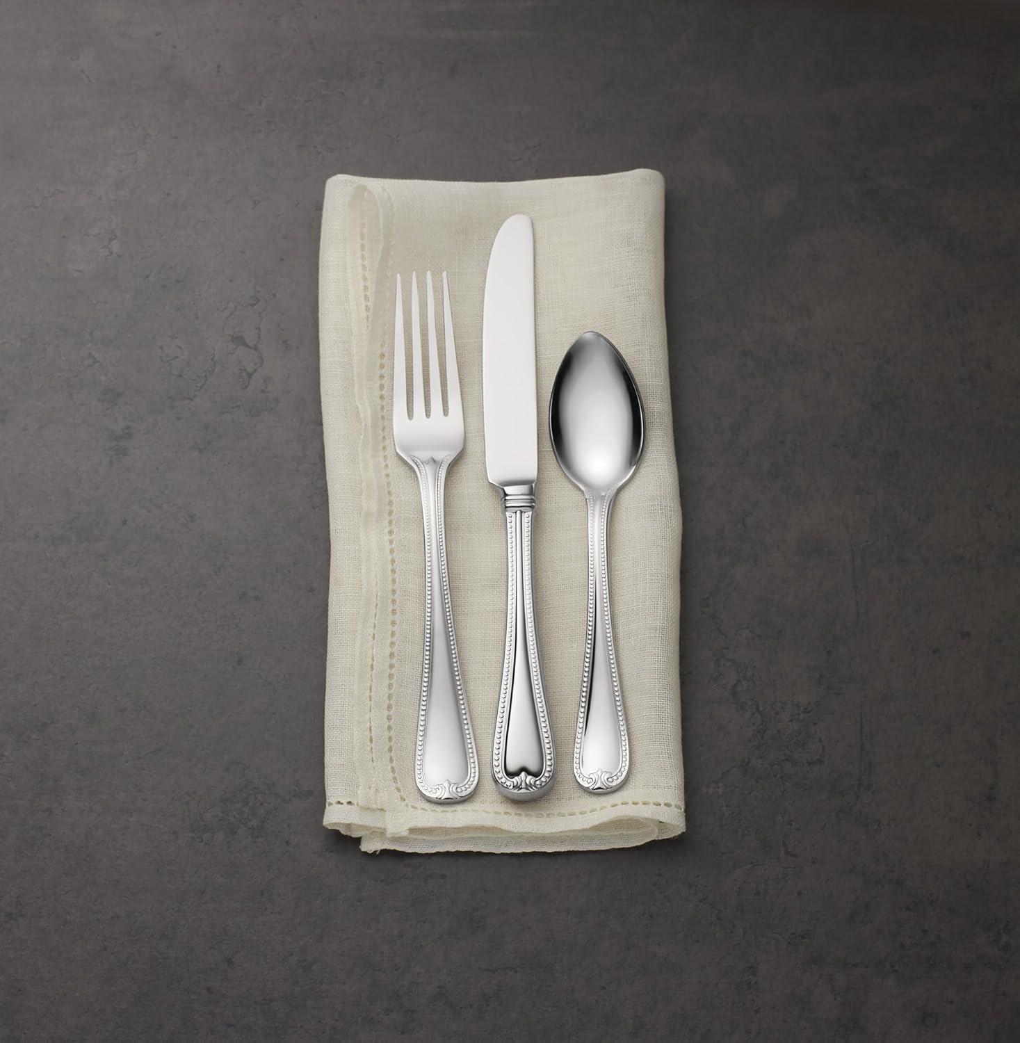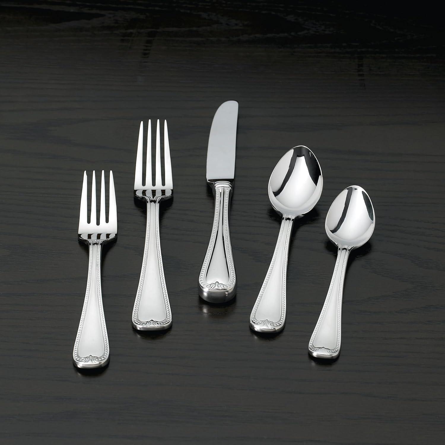 Includes place knife, place fork, salad fork, place spoon and teaspoon