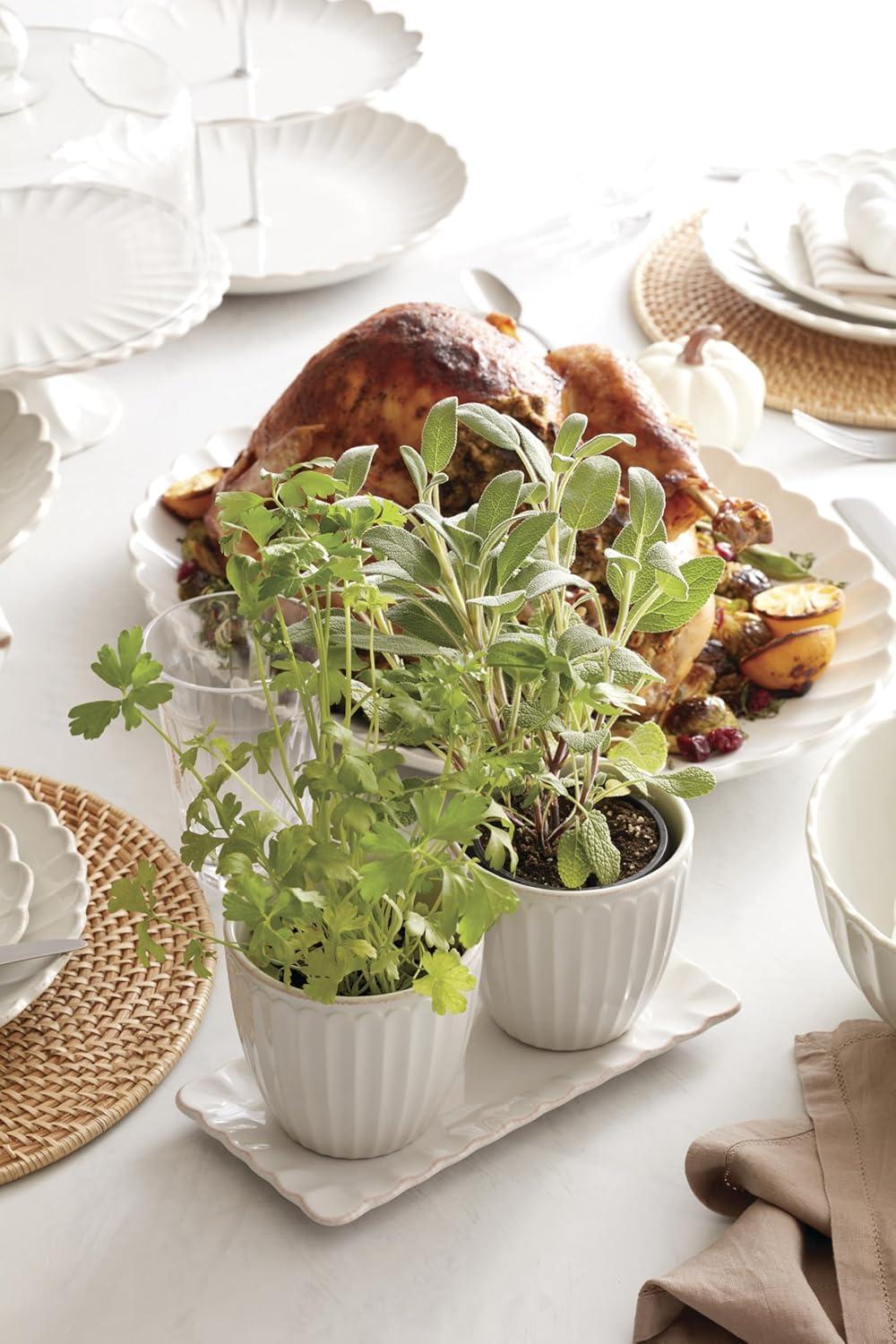 Lenox 895081 French Perle Scallop Cylinder Vase(Herb Pot with Tray)