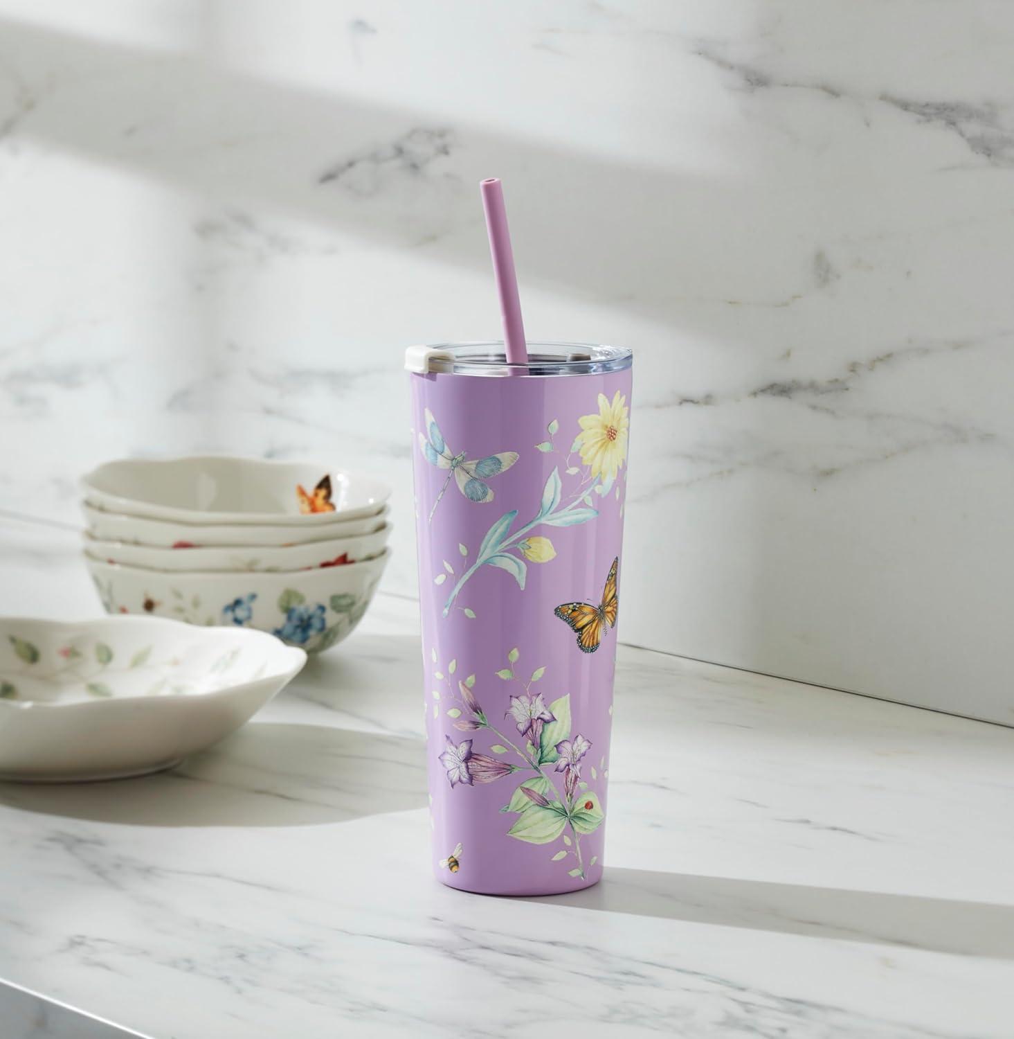 Lenox 895741 Butterfly Meadow Light Blue Stainless Steel Kids Water Bottle(Lavender)