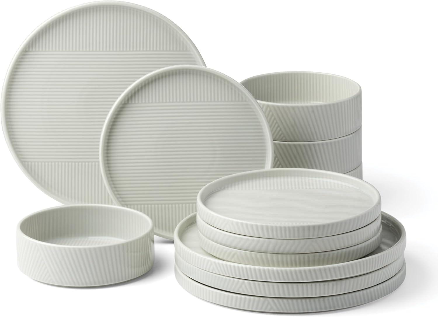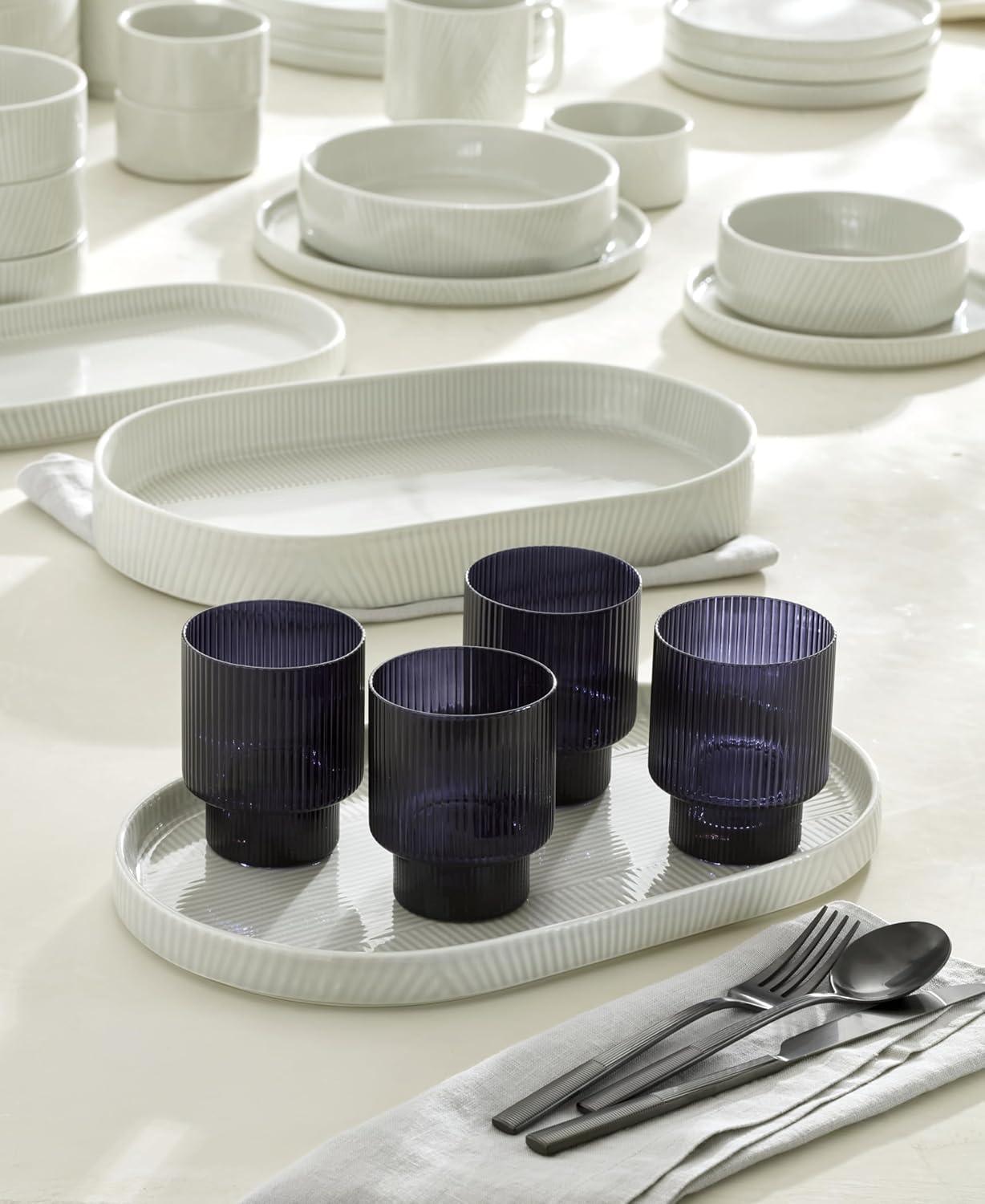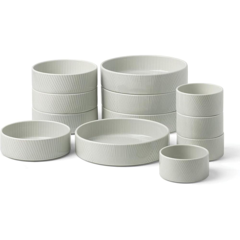 Inspiring serenity with satisfying stackability and Zen garden-inspired texture, this Modulus serving set invokes a sense of calm in use and in cabinets.