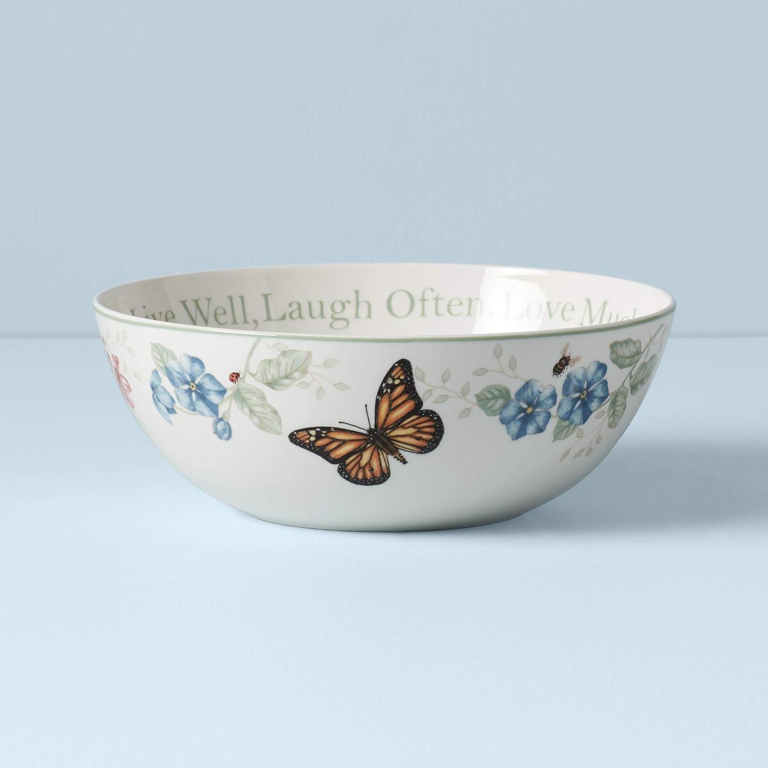 Lenox Butterfly Meadow “Live Well, Laugh Often, Love Much” Serving Bowl, White –