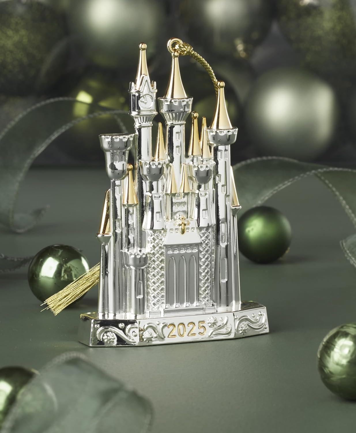 Lenox Ornaments, 2025 Babys 1st Christmas Rudolph Ornament, Silverplated Metal and Resin, Red Ribbon for Tree Decoration, Christmas Decorations, Winter Tree Ornaments, Rudolph Design (1 Piece)(Cinderella Castle)